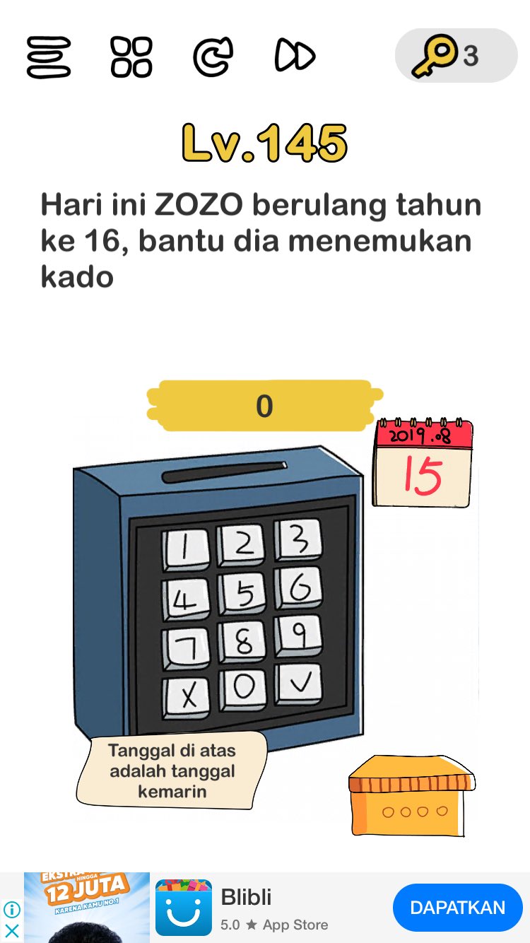 Lakukan kebalikan dari apa yang diperintahkan oleh arahan kepadamu. Bantu zozo untuk menemukan sepatu roda. Hari ini zozo berulang tahun ke 16, bantu dia temukan kadonya. Buka kado maka akan mendapatkan petunjuk. Nah, itu dia contekan kunci jawaban brain out bagi kamu yang sudah mentok dan tidak tahu bagaimana cara menyelesaikan permainannya.
